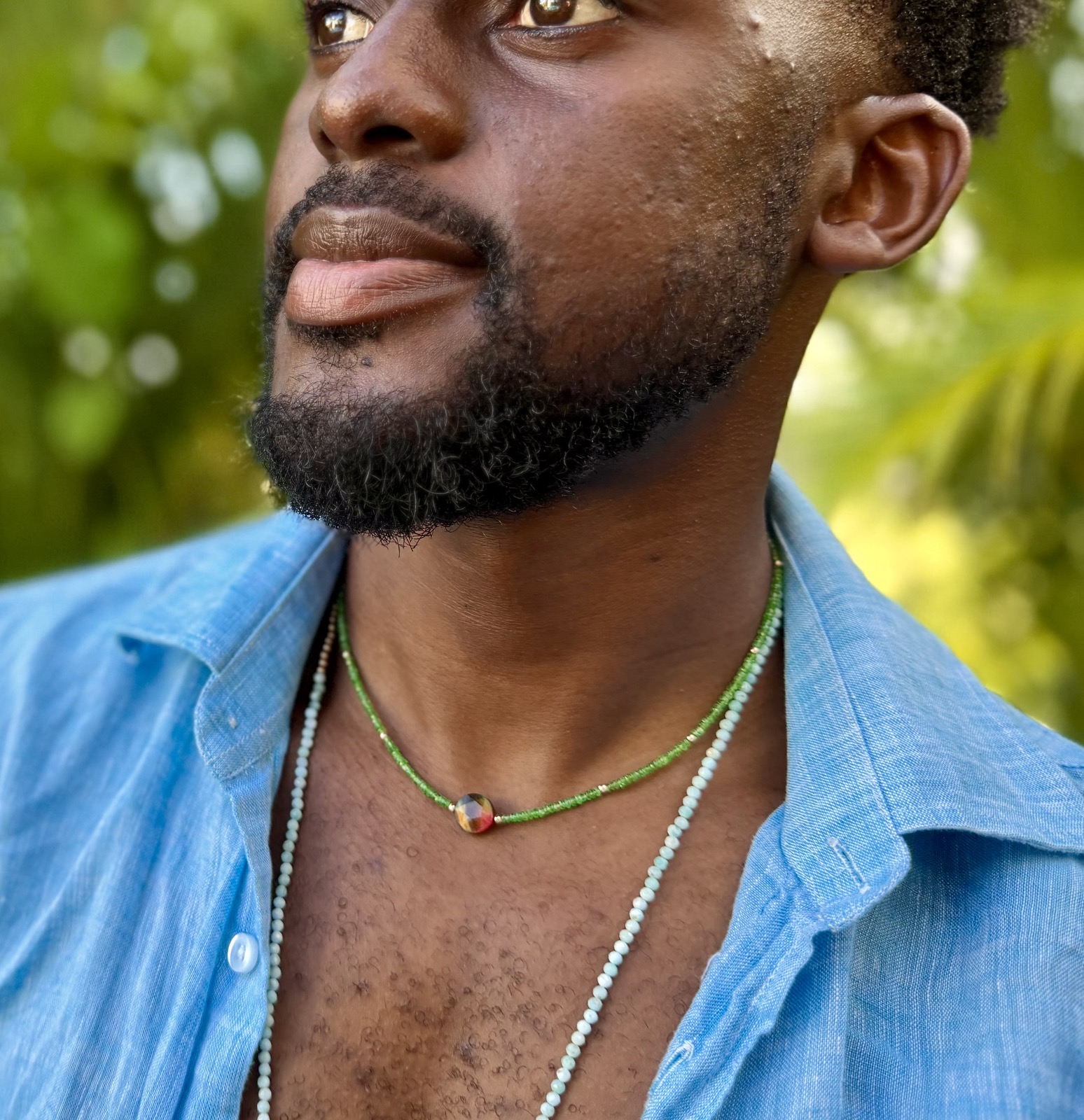 ILLUMINATION: Sapphire Rainbow Beaded Necklace with Mauve Pink Edison Freshwater Pearl